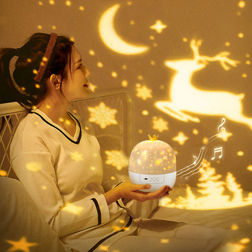 De combinatie van rustgevend licht en muziek helpt kinderen ontspannen en inslapen zonder gedoe.