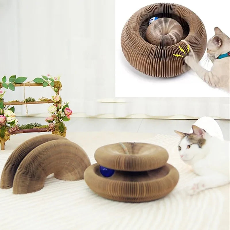 De RolliKat is gemaakt van duurzaam honingraatkarton dat niet alleen sterk is, maar ook ideaal is voor krabben. De ronde lagen bevatten bewegende balletjes die je kat telkens opnieuw probeert te vangen — een onweerstaanbare prikkel voor het jachtinstinct. De Rollikat is gemaakt van stevig honingraatkarton en is flexibel vormbaar in allerlei rondingen en bochten. Dankzij de opening in het midden kun je hem eenvoudig om een stoel- of tafelpoot buigen. En terwijl je kat enthousiast speelt, verzorgt hij spelenderwijs ook nog zijn nagels. Het compacte formaat past in elk interieur én het natuurlijke materiaal is veilig voor katten.