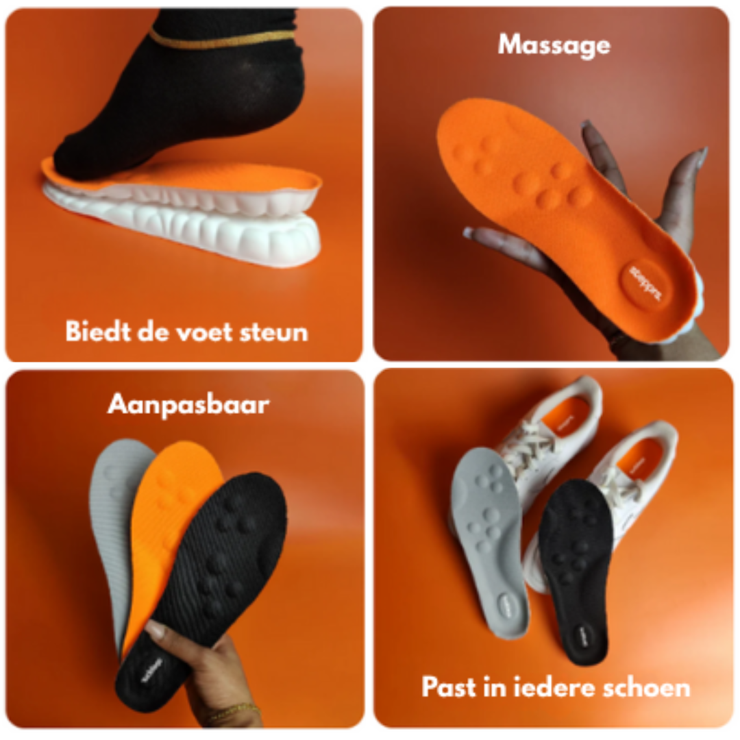 Ben je vaak lang op pad – voor werk, sport, of een dagje shoppen? Met de #1 beoordeelde StepEase™ massageschoenzool beweeg je comfortabel, pijnvrij én vol energie. Of je nu danst, rent of wandelt – met StepEase™ gun je je voeten het comfort dat ze verdienen.